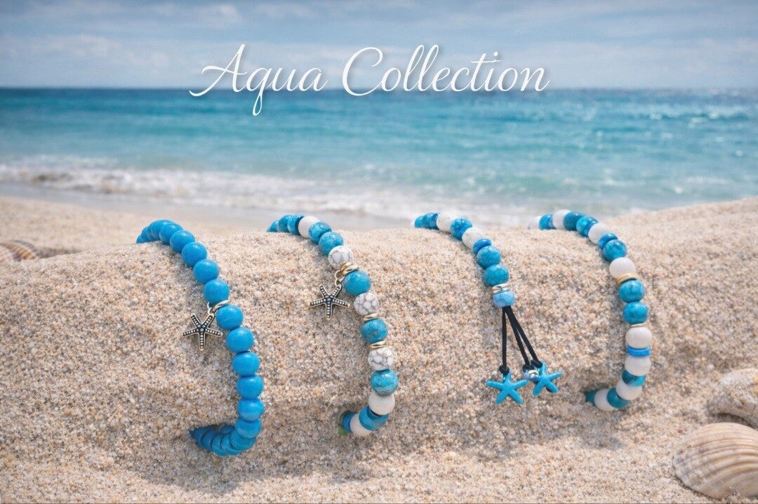 A clean and timeless design featuring vibrant turquoise beads and a delicate silver starfish charm. Crafted on durable stretch for effortless everyday wear.