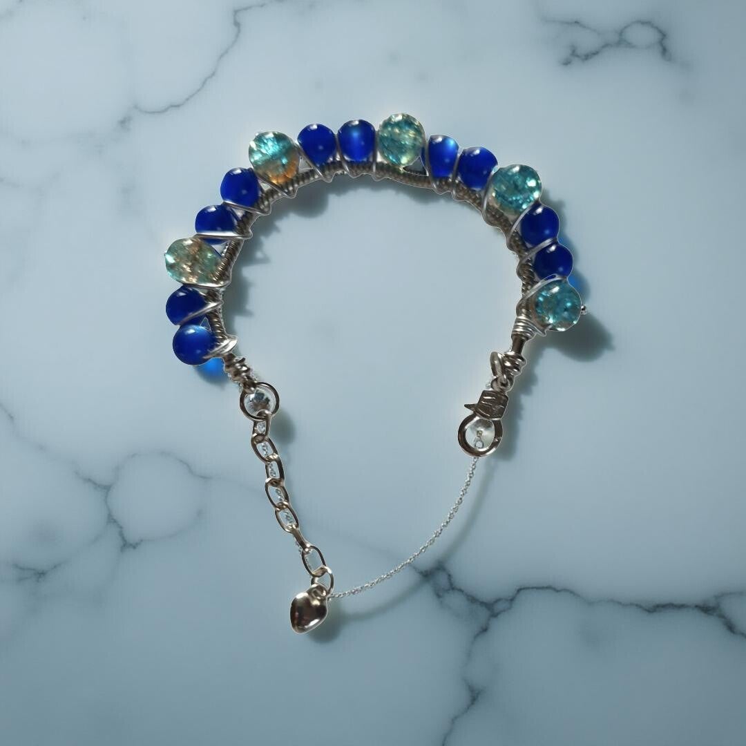 • Hand-crafted bracelet featuring soft green and mint-toned beads