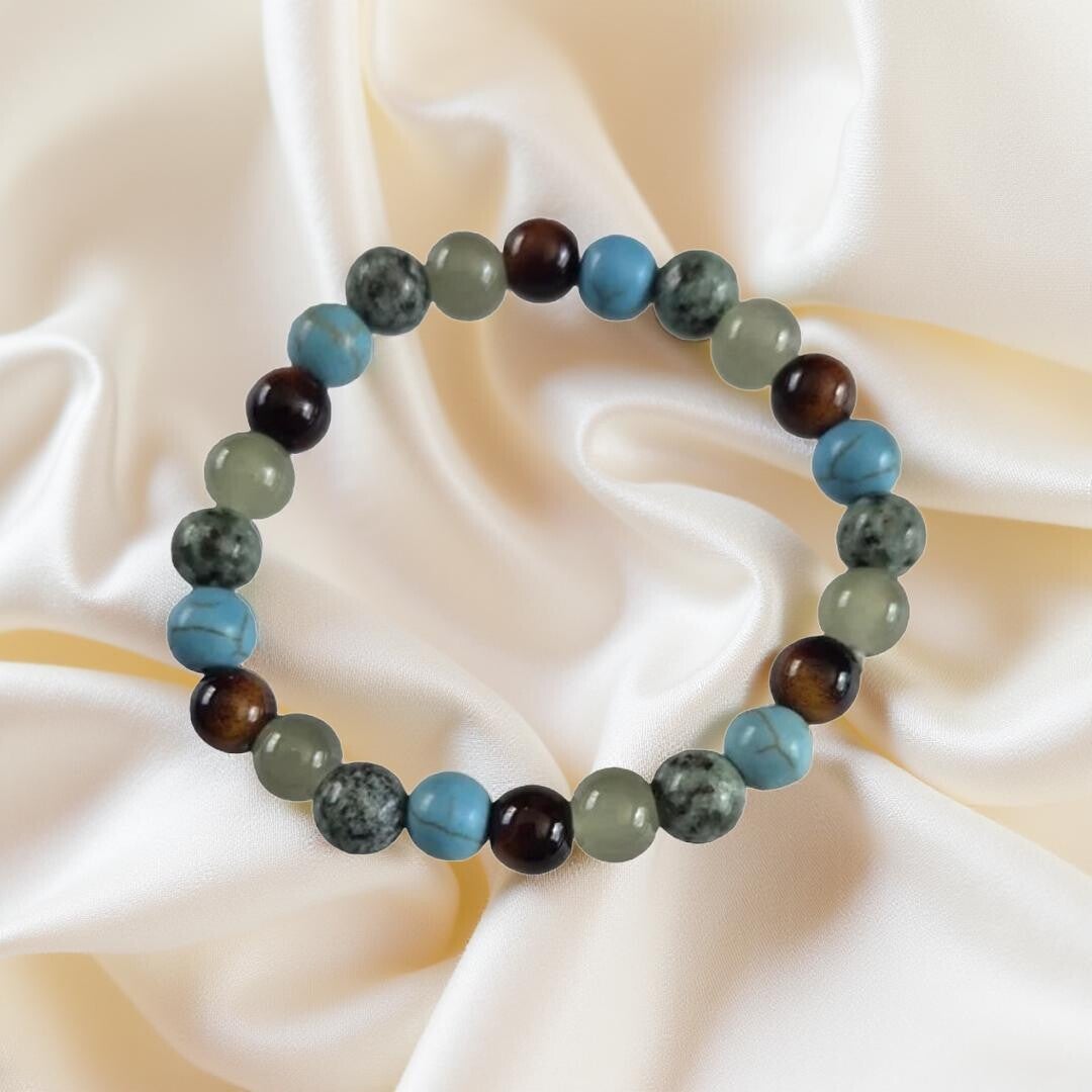 Multicoloured Bracelet made of glass beads.It colours represent the mountains, the sea, the forest, the sky. It is such a beautiful bracelet