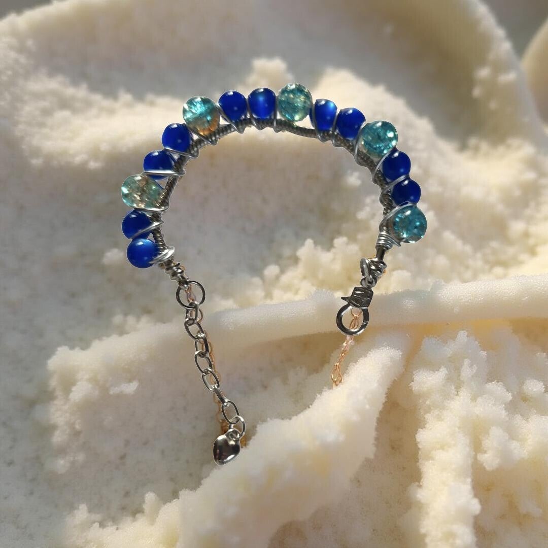 Hand-crafted, Ocean blue mix it with a more light blue.