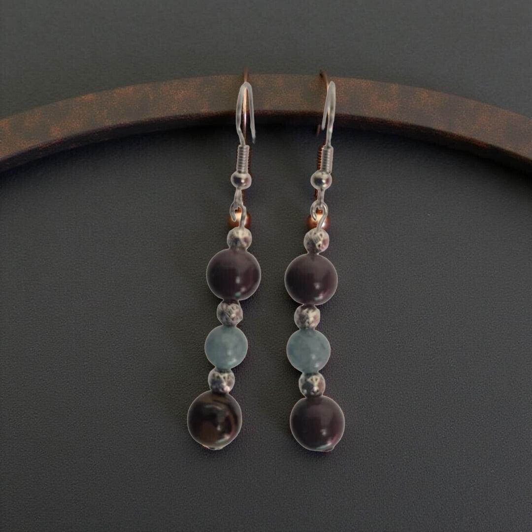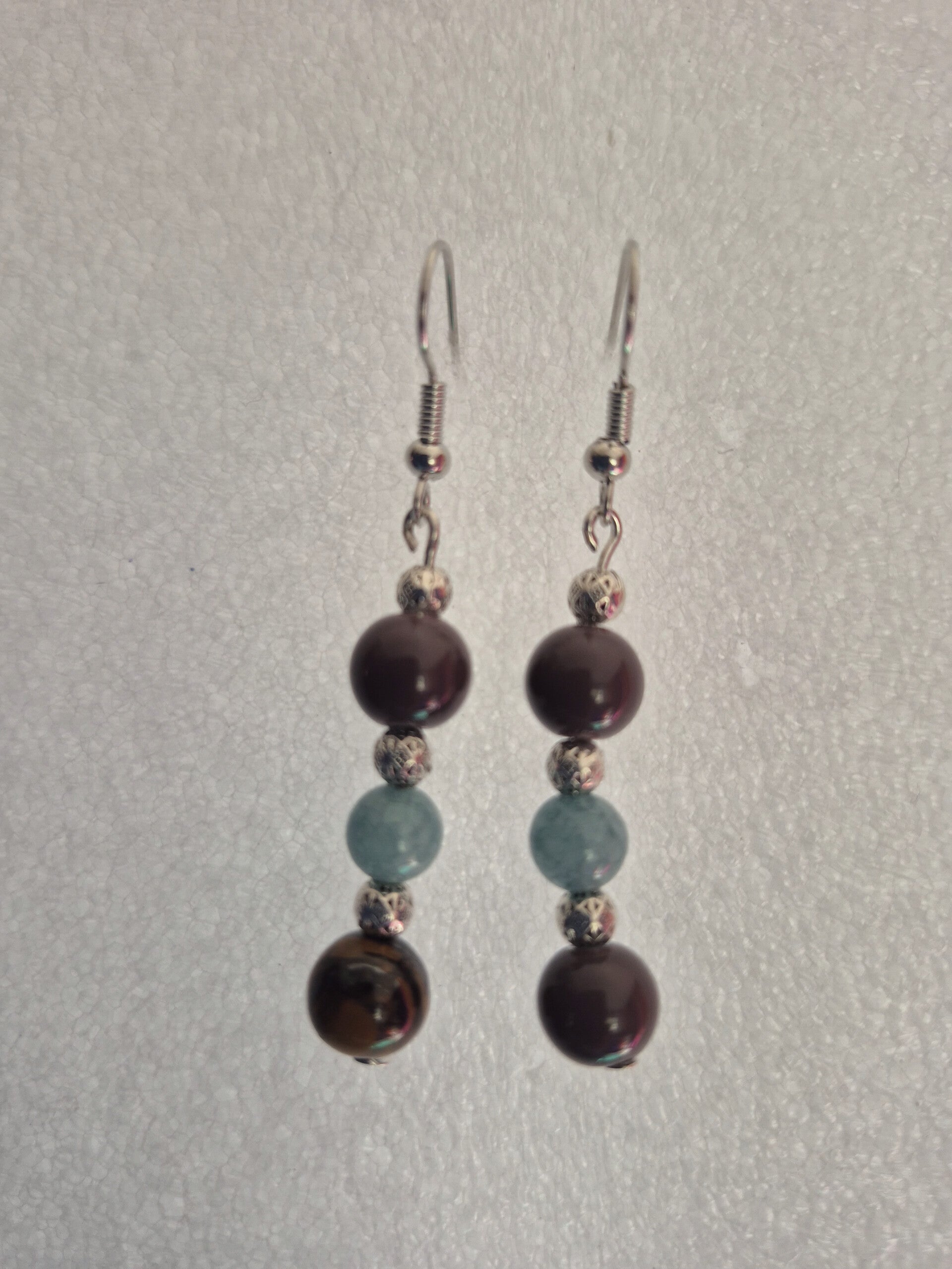 Rich chocolate brown and greenish coated beads and accent of silvery spacers