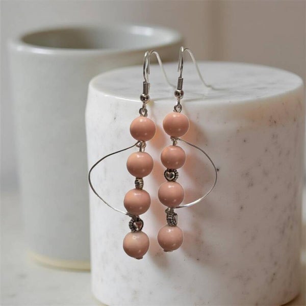 Soft and feminine, these drop earrings feature delicate blush-toned beads accented with subtle silver details and charming heart spacers. The gentle colour and flowing design create an elegant, romantic feel. A beautiful piece perfect for adding warmth and sweetness to any look.