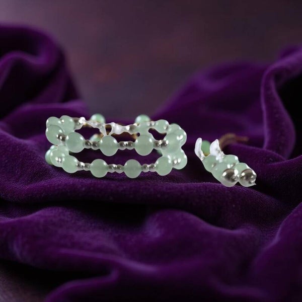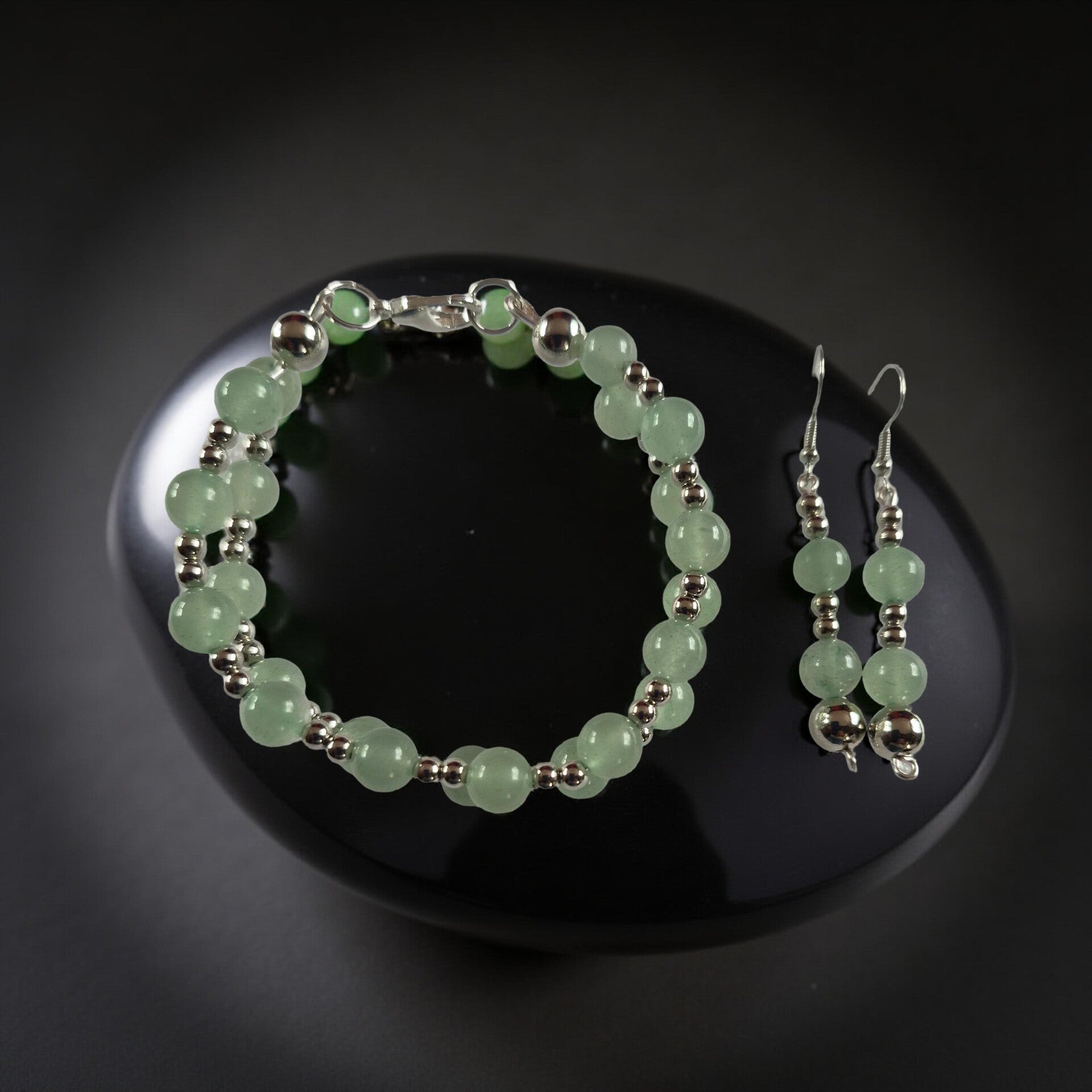 This bracelet is double lined, feminine, delicated, lightweight, comfortable. This set is made of glass beads and silver spacers for embellishments.