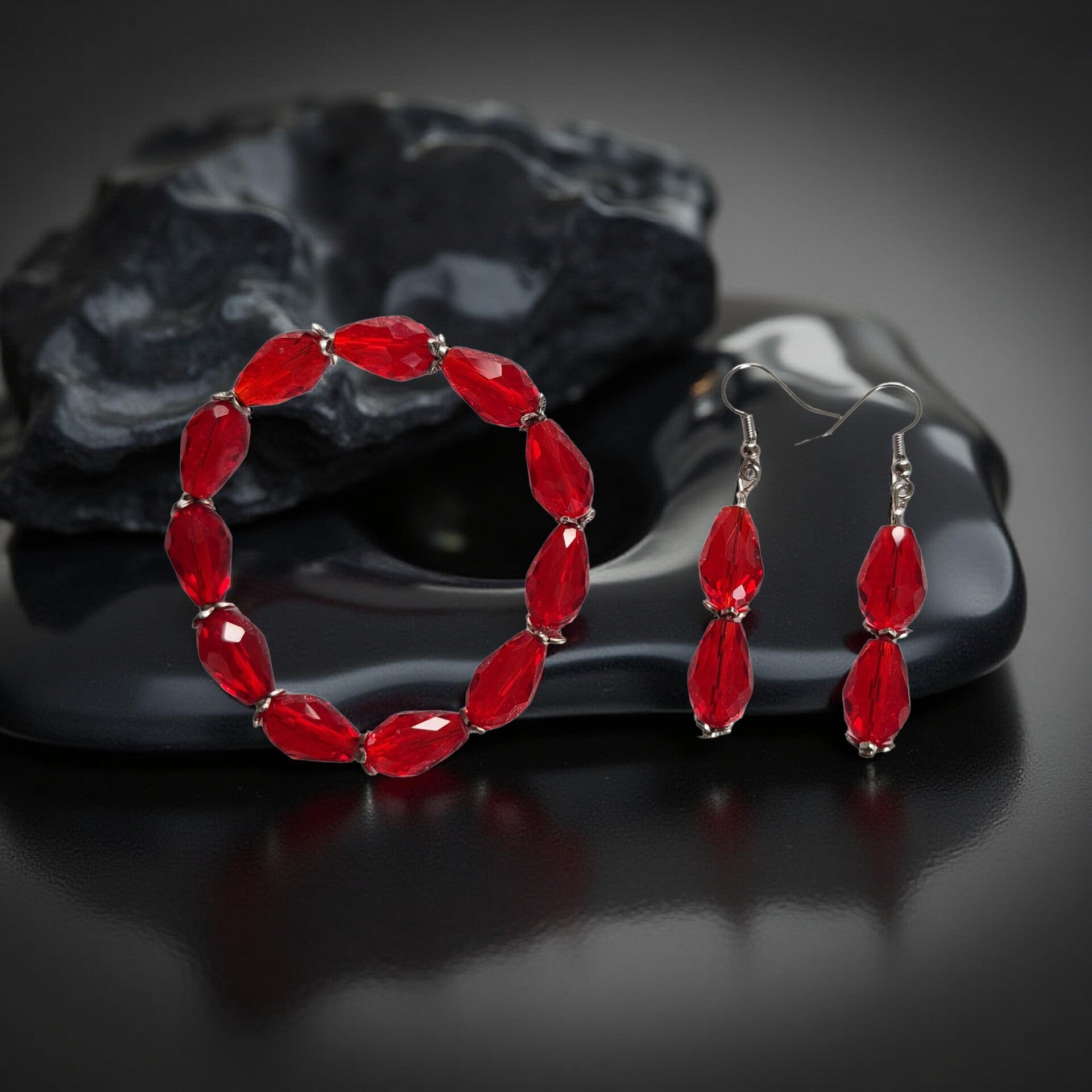 Red bracelet and matching earrings