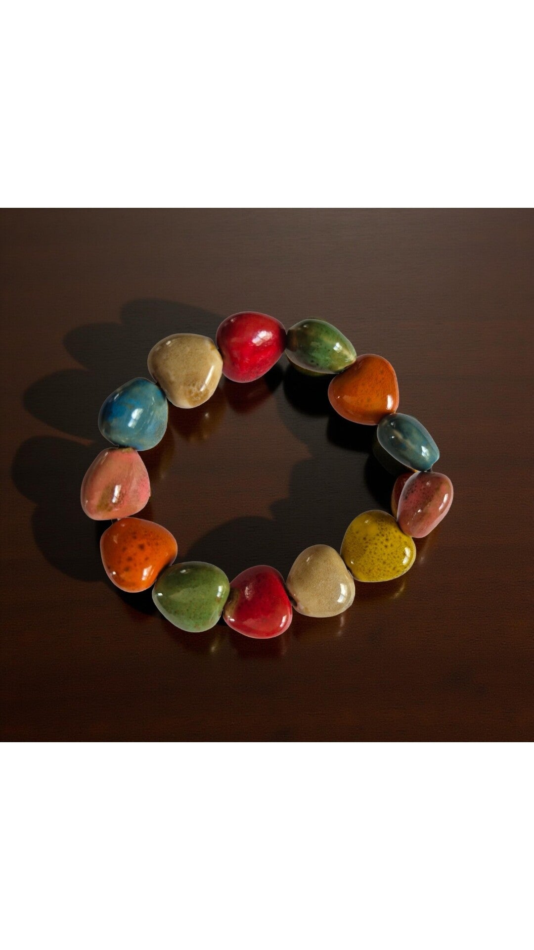 Cute and casual wear. Rough glass beads, colourful hearts, fun to wear.