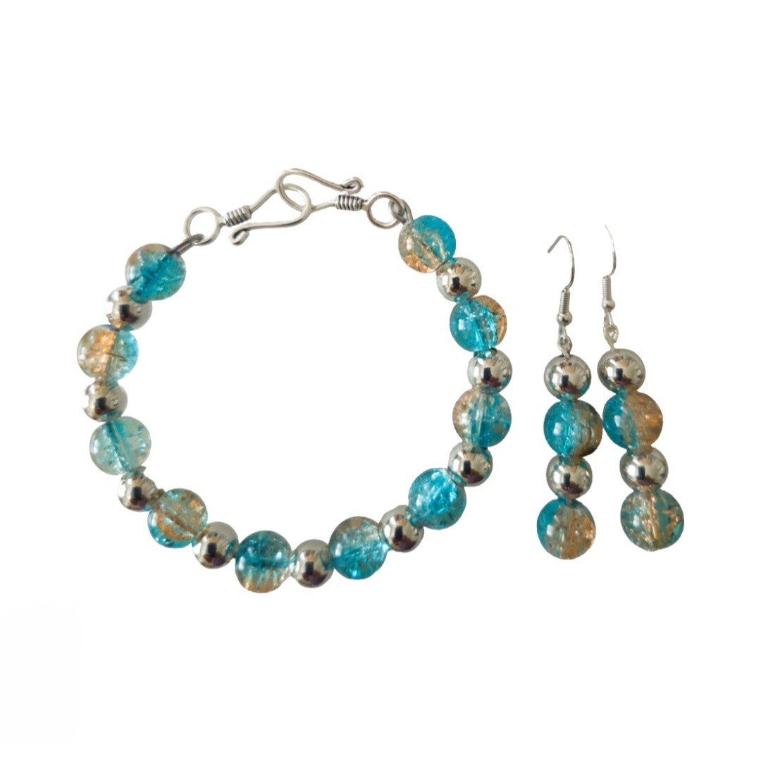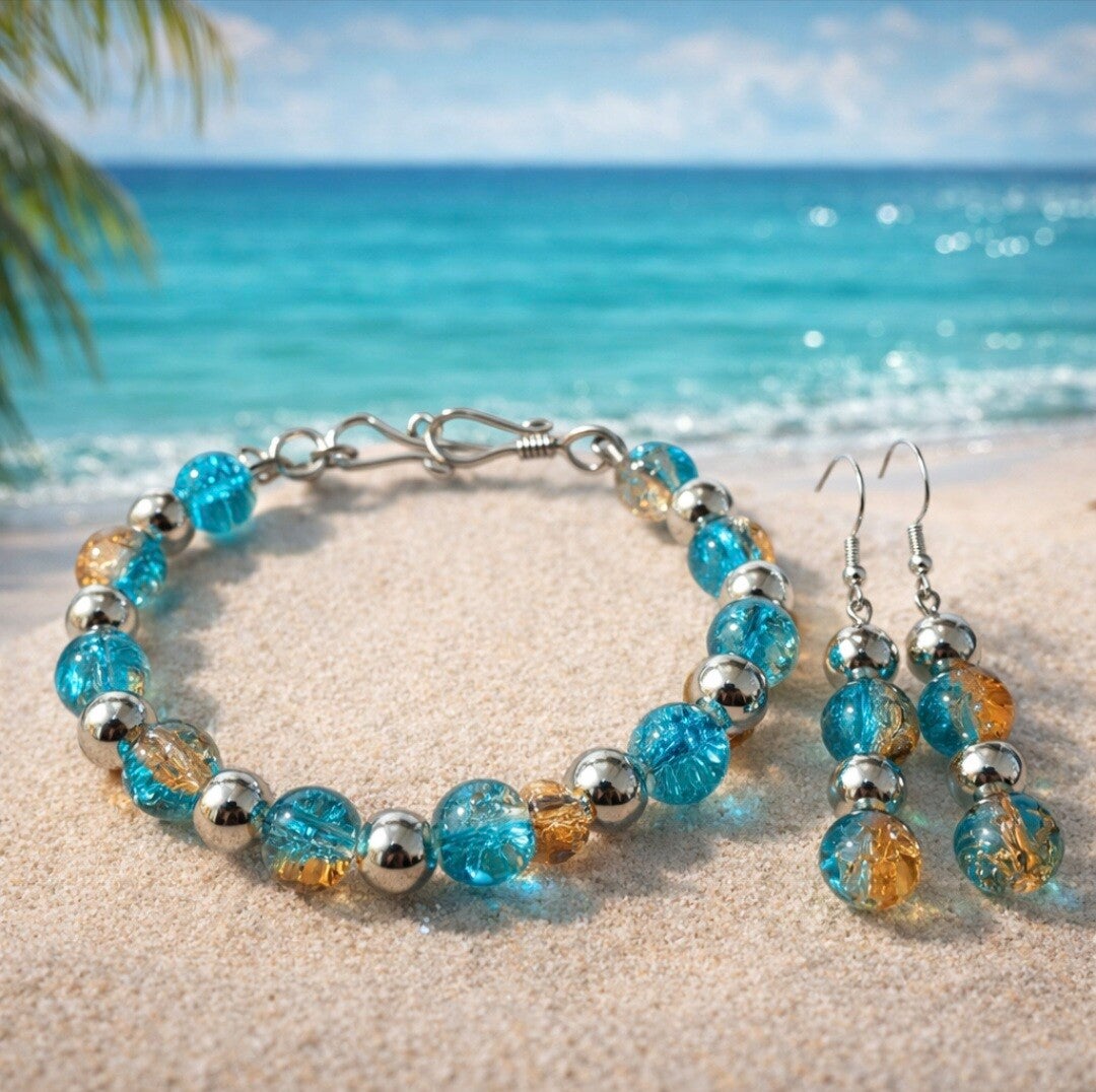 The bracelet is finished with a secure clasp, and the matching drop earrings add graceful movement and shine. Fresh, vibrant, and elegant - perfect for adding a touch of coastal charm to any outfit.